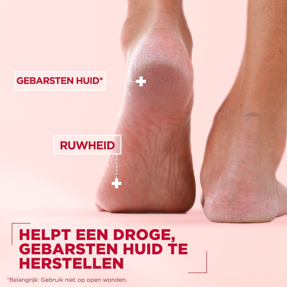 Deze alles-in-één oplossing is speciaal ontwikkeld voor droge, ruwe, gebarsten huid op voeten, knieën, handen en ellebogen. De hypoallergene formule is geformuleerd onder medische controle en geschikt voor een gevoelige huid. Met een non-glanzende finish trekt de zalf goed in zonder plakkerig gevoel achter te laten.