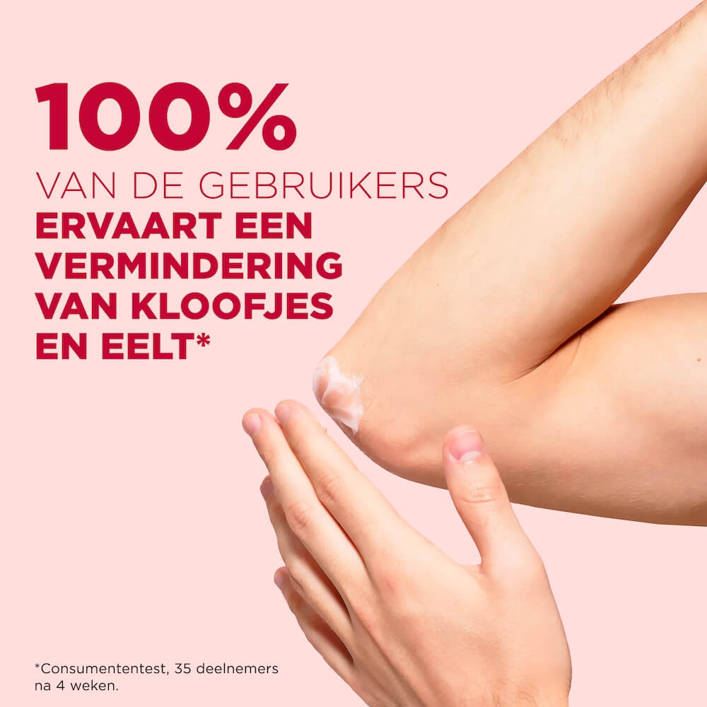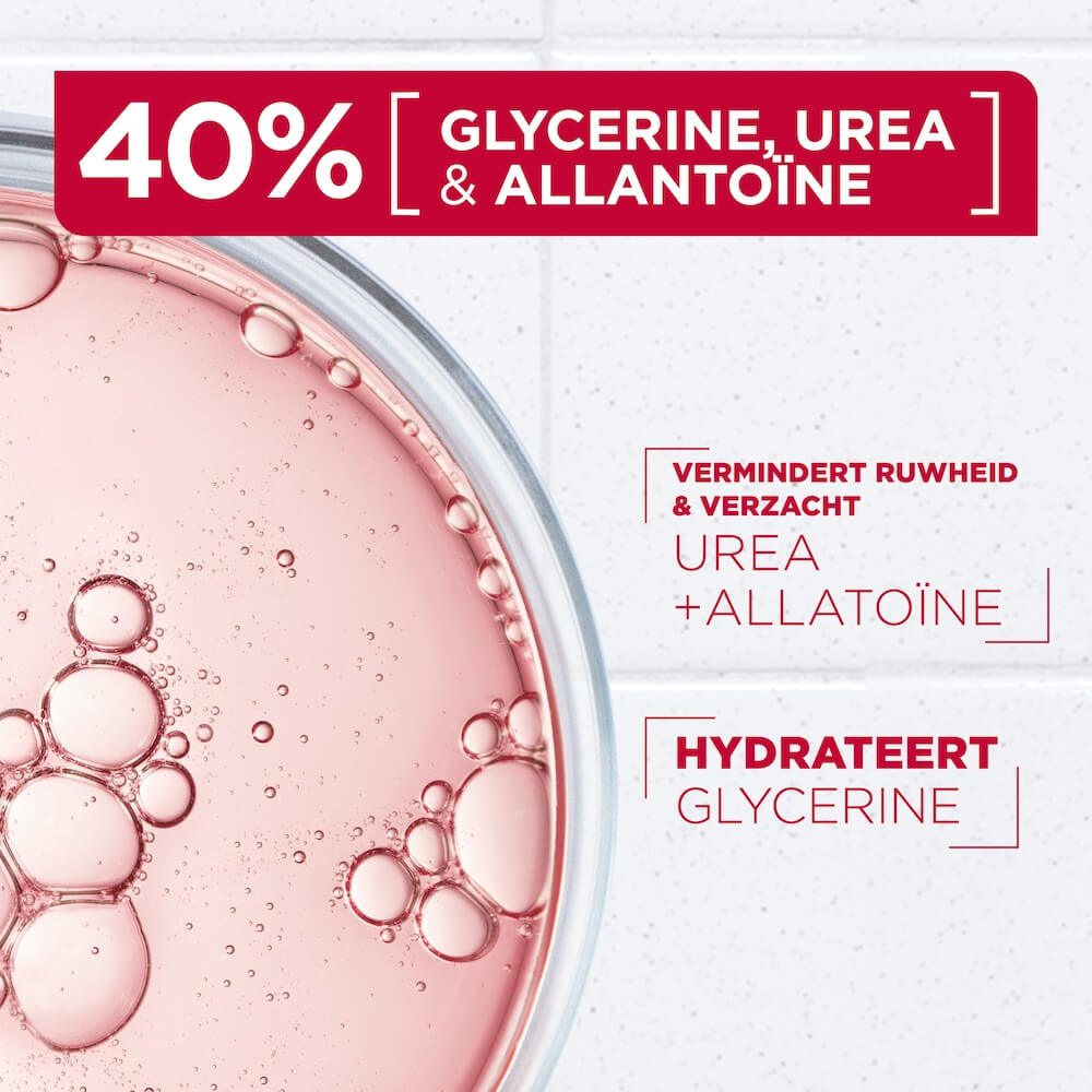 De krachtige ingrediënten werken synergetisch samen: glycerine hydrateert intensief, urea ondersteunt huidvernieuwing waardoor ruwheid vermindert, en allantoïne verzacht en hydrateert de huid. Klinische resultaten tonen aan dat 100% van de gebruikers een vermindering van kloofjes en eelt ervaart*** en voor 100% van de gebruikers voelt de huid minder geïrriteerd*. Bovendien bevestigt 92% dat ruwheid al na één nacht slapen verminderd is*****.